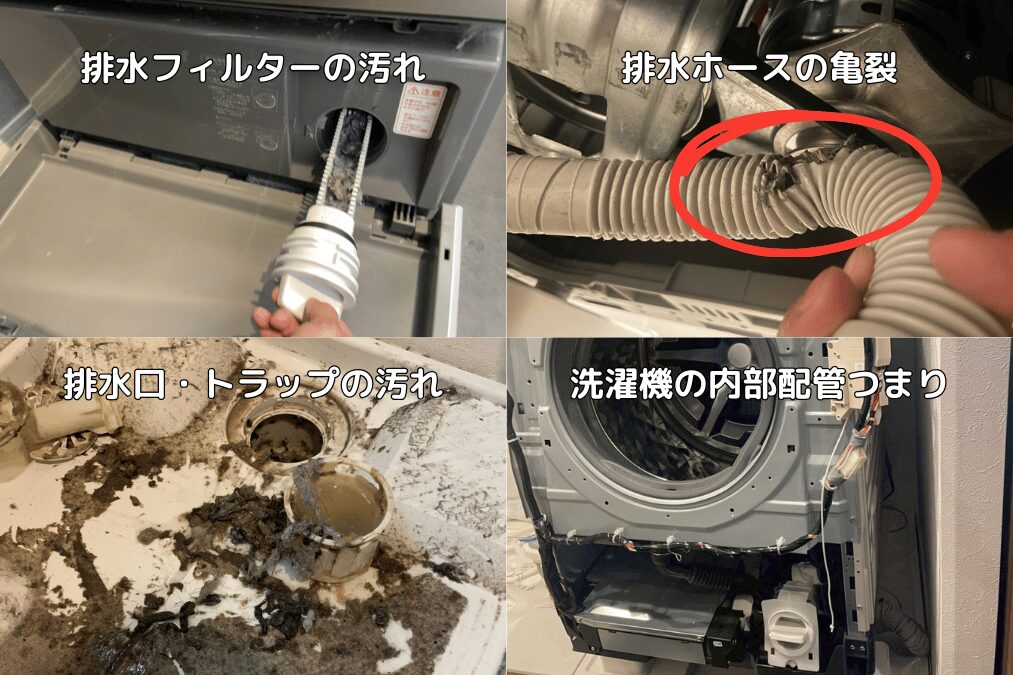表面的なゴミ詰まりで済むケースもあれば、内部の配管詰まりや排水弁や水位センサーの故障といった分解が必要なレベルに発展している場合もあります。